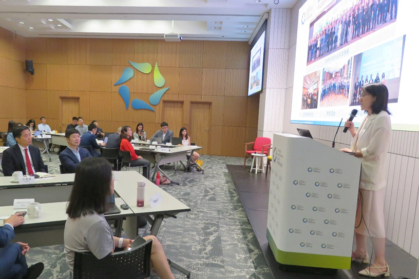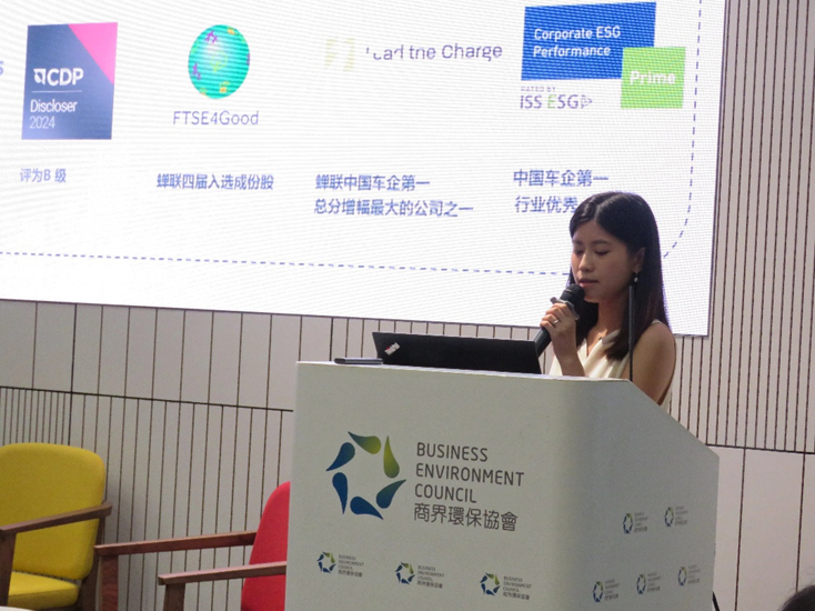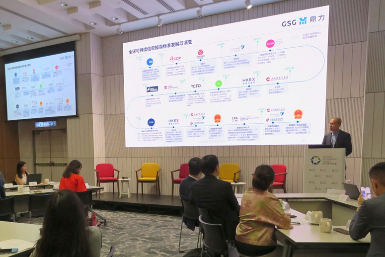 商界环保协会政策及研究助理经理韩思琦以“香港上市企业气候相关信息披露比较分析”为主题,系统介绍了国内外各个环境与气候方面的披露框架对于香港上市企业的要求和影响,并通过中电与太古地产两个企业案例,详细分析了香港企业在气候与自然相关披露的管治框架、风险和机遇分析、重要性评估等各方面的优秀实践。
