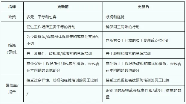 该调整并非要否定DEI的重要性,而是将原来大而全的议题聚焦到一条更尖锐、更明确的主线,即识别、预防和管理歧视与骚扰风险,这样与各国法规监管内容更贴合,也使企业的重点工作从“我们要讲多元故事”到“我们如何确保没有人受到歧视和骚扰伤害”,让评级更精准,责任更落地,证据更明确。