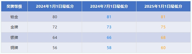 自2024年调整为以企业得分在所有EcoVadis评级企业中的百分比排名来授予奖牌后,各奖牌等级对应的最低分不断攀升。此前,主题分数都是四舍五入到十位数,从2025年1月1日起,所有主题分数都精确到个位数,提高主题分数的清晰度。这些变化反映出,随着参与评估的企业数量增多以及整体ESG水平的提升,各奖牌等级的竞争愈发激烈,企业间细微的管理差距都会转化为分数的差异,进而影响奖牌获取难度。