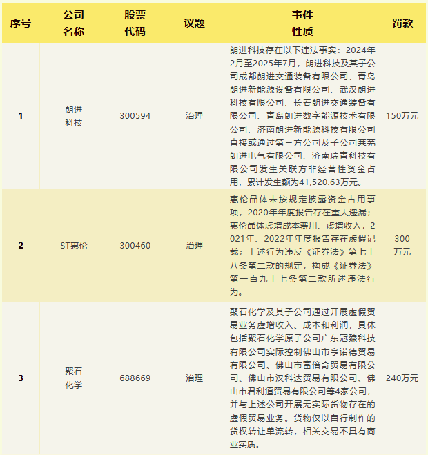 治理|朗进科技;ST惠伦;聚石化学